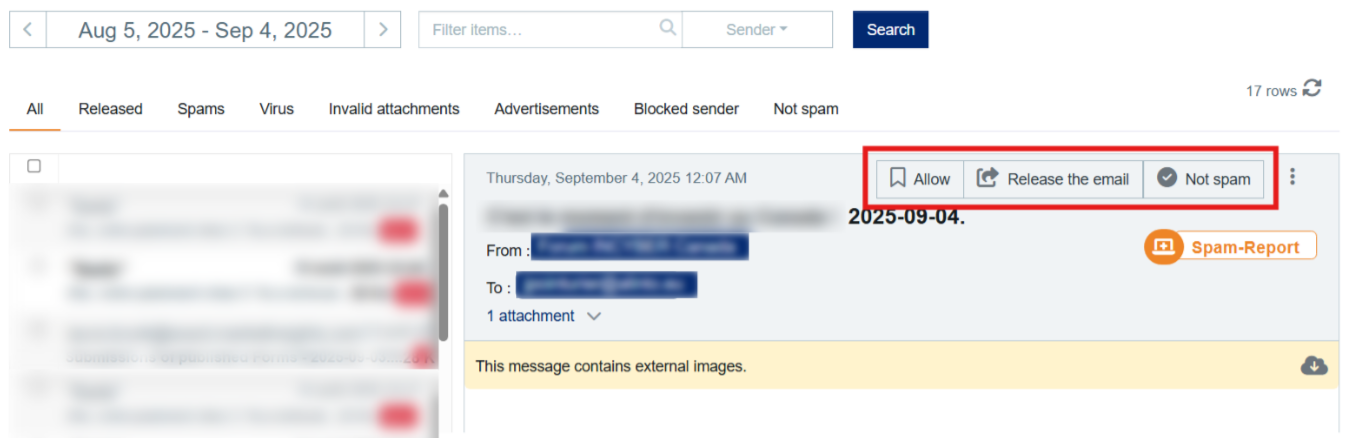 Release the email: The email will no longer be held in your quarantine folder and will be sent to your inbox.