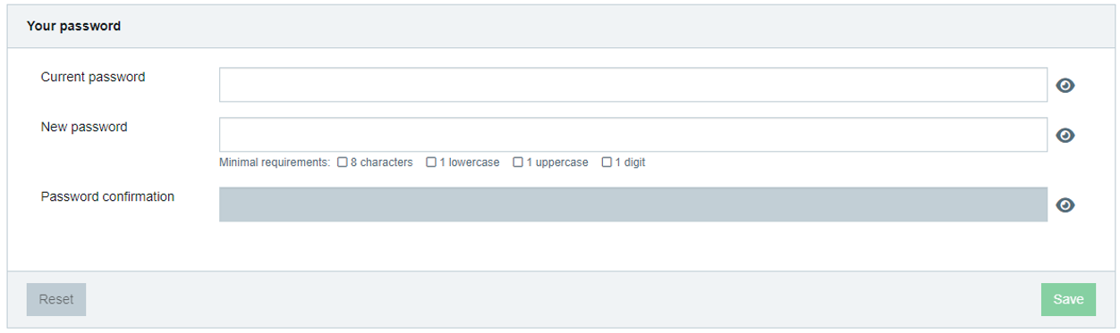 To change your password, access your profile by clicking on your name in the upper right corner of the screen.