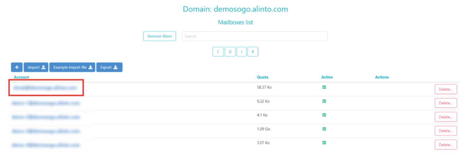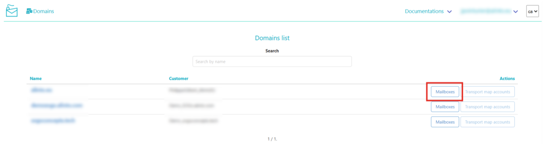 This page shows all the mailboxes in the domain.