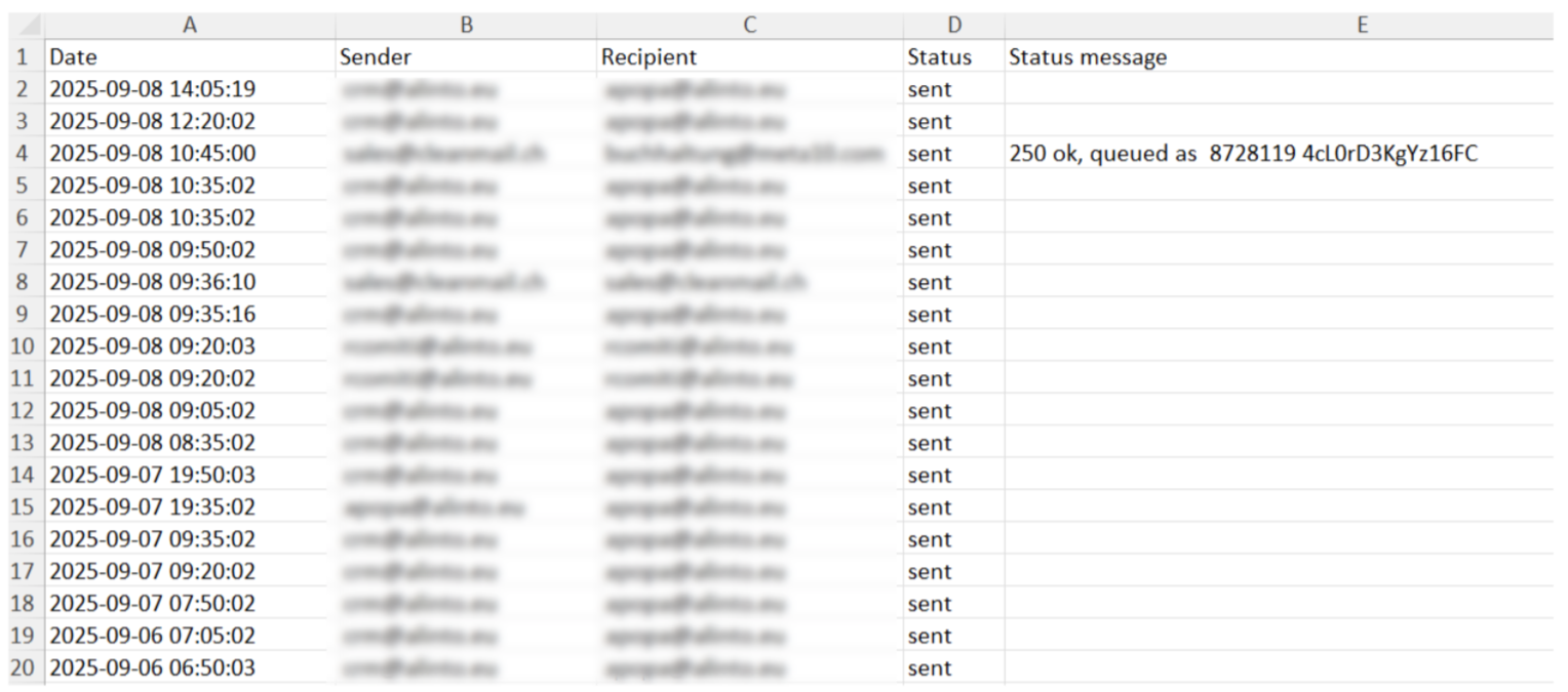 Status: Transmission status of your email