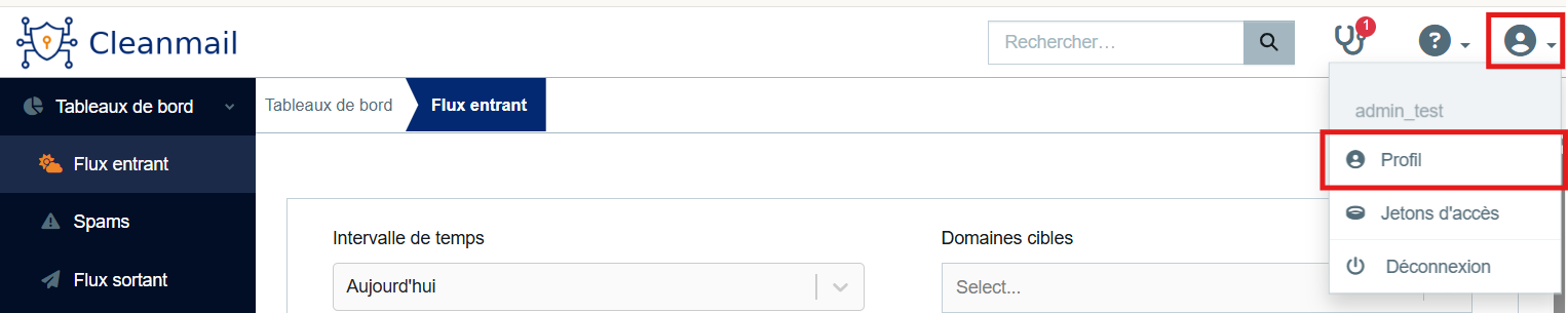 Pour changer votre mot-de-passe, accédez à votre profil en cliquant sur votre nom dans le coin supérieur droit de l'écran.